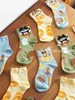 「2025春夏新作」MEWJIオリジナル 靴下3足セット 黄緑色 レディース |画像の色 (1組3足)5点セット