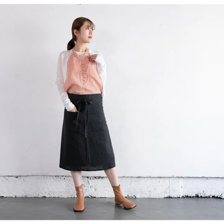 pina リネン・グレーブラックギャルソンエプロン 英国マーチャン&ミルズのヨーロッパリネン ブラックというには霞んでいて グレーというには濃くてマットなグレーブラックリネン おとなのギャルソンを一枚加えてみてはいかがでしょうか プレーンなスタイルは、後ろも十分隠れるサイズです センターにふたつに分かれたおおきめなポケット 共布の紐で結びます リネンは最初はシワが気になるもの しかし、どんどん洗っていくうちに目が詰まってきて、空気を含んでふんわりとしてきて、洗えば洗うほどアイロンは要らなくなります 風合いの変化もお楽しみください 以下はmerchant&millsの説明 eco認証リネン リネンはほとんど自然な有機物です。 完全に生分解性でリサイクル可能であり、その自然な吸収性のために、亜麻は北ヨーロッパで最もよく育つ強い植物です。 肥料はほとんど必要なく、地域の気候のため、余分な水もほとんど必要ありません。 実際には多くの農薬を必要とししないのです。 欧州議会への諮問委員会の報告書は、亜麻の栽培は「環境の一時停止」を可能にするため、生態系の多様性にプラスの効果があると述べています。1ヘクタールの亜麻は3.7トンのCO2を保持できます。 植物のすべての部分が使用され、リネンの製造に使用されていないものは、亜麻仁油、紙、牛の飼料、さらには石鹸の製造に使用できます。