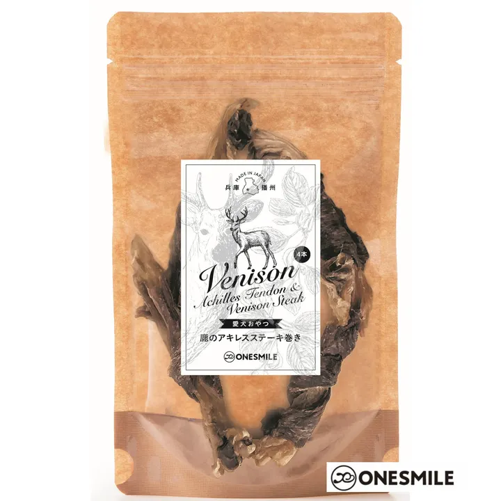 鹿アキレスに鹿肉をたっぷり巻いた、ちょっと贅沢なおやつです。 噛むほど価値が伝わる、“鹿づくし”の贅沢おやつ ~希少な兵庫県産天然鹿×アキレスの食べ応えで、差別化できる一品~ 兵庫県産の天然日本鹿のアキレスを、 同じく鹿肉で丁寧に巻き上げた、 “鹿を丸ごと味わう”高付加価値おやつです。 主原料はすべて兵庫県産の天然日本鹿。 添加物を一切使用せず、 素材そのものの風味と食感を活かして仕上げました。 アキレス特有のしっかりとした噛み応えに、 鹿肉の旨みを重ねることで、嗜好性と満足感を両立。 「長く楽しめる」「特別感がある」というニーズに応える設計です。 さらに、 ・希少な“国産天然ジビエ”というストーリー性 ・手作業で巻き上げるクラフト感 ・見た目のインパクトと非日常感 これらが、店頭での差別化・単価アップ・ギフト提案に直結します。 “ただの硬いおやつ”では終わらない、 ストーリーと価値で選ばれる一品。 ごほうび需要はもちろん、 「長く楽しめるおやつ」「他と被らない商品」を求める顧客層に対して、 しっかりと提案できる商材です。