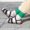【1Pソックス】リネンコットンバイカラーショートソックス【レディース】 45 グリーン Sサイズ:22.5-24.5cm