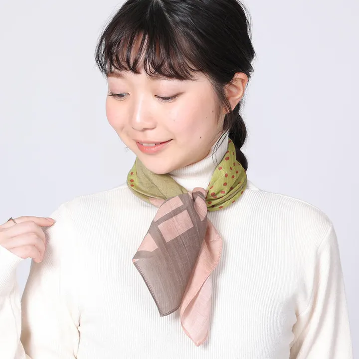 鴨川、墨田川、直島に続く景観シリーズ。 京都の「嵐山」をイメージしたスカーフです。 秋の華やかな紅葉、冬のしんとした静けさを描き、タペストリーとしても飾っておくることのできるスカーフに仕上げました。 肌にやさしいコットンシルク素材は、柔らかな風合いと上品な光沢が魅力です。 首元に巻いたり、バッグのアクセントとして取り入れたりするだけでおしゃれ度がアップします。 自分へのご褒美や大切な人への贈り物としてもおすすめです。 インドの伝統手法の一つにあげられるシルクスクリーンプリントは、大きな版を使い、木べらを滑らせながら、二人がかりで1色ずつプリントする技法です。 使う色は1枚の版につき1色で、何度も色を重ねて、ひとつのデザインを完成させていきます。 一度に広い面積を印刷できるスクリーンプリントは、ブロックプリントに比べて効率的ではあるものの、色を重ねていく力加減や載せるインクの量など、職人ならではテクニックが必要になります。 柄の境に生まれるムラや揺らぎは手作業だからこそ味わえる魅力の一つです。 【ファッション雑貨】【小物】【UV/紫外線対策】【冷房対策】【羽織りもの】【母の日】【シアー】