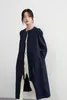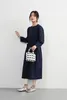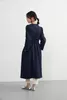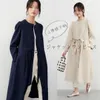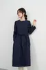 KNXJ512・リボンベルトワンピース風ジャケット・長袖アウター羽織れるワンピース・立体感格子素材 NAVY/FREE
