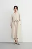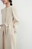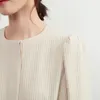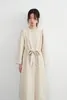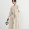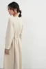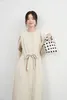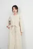 KNXJ512・リボンベルトワンピース風ジャケット・長袖アウター羽織れるワンピース・立体感格子素材 ECRU/FREE