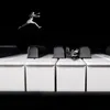 【現代アートポスター】ピアノ 鍵盤 モノトーン 写真コラージュ 子供 キッズ A4(S) フレームセット:無垢 30.4×39.4cm
