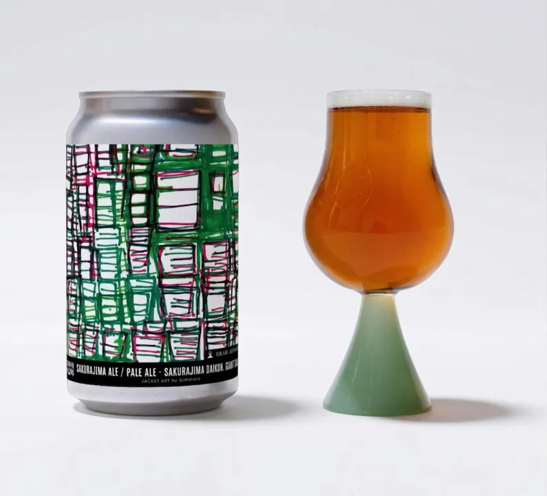世界一重たい大根としてギネスブックに認定されるほど大きな桜島大根は、大きい物では20~30kgにもなります。「かごしまの伝統野菜」にも選ばれている桜島大根は、大和本草(1709年)に「薩摩大根は常のより大なり」と記録されており,江戸時代には既に栽培されていました。 大きな蕪のような「桜島大根」は緻密で雪のように白い果肉でさっぱりとした味わい。また「トリゴネリン」という血管の改善をもたらす機能性成分は青首大根の約60倍。健康にもよい食材です。桜島の麓、水はけの良い火山灰土ですくすく育ちすぎる桜島大根。なかでも「坂元農園」さんは桜島大根を大きく育てる名人の一人。しかし、大きく育てる中で、自重で割れてしまう大根もいます。そんな割れた桜島大根を我々が畑から引き抜き、洗って割れた部分をトリミング。麦汁と合わせてクラフトビールにしました。 雄大な鹿児島のシンボル桜島らしい、大きな桜島大根を感じられる、さっぱりとしたAleをお楽しみください。