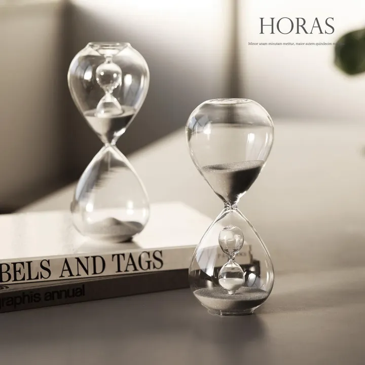 このユニークな砂時計は、外側の大きなガラスの中に、小さな砂時計が収まっている斬新なデザインです。 時間の流れを二重に感じることができるこの砂時計は、日常に新たな視点を与えます。 外側の砂が落ちる様子を眺めながら、内側で繊細に動く小さな砂時計を楽しむことができ、インテリアとしての美しさも兼ね備えています。