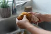 【使用前】 冷水で軽くすすいで使用してください。使い始めはココナッツ繊維が少し抜ける場合がありますが、特に問題なく使用していただけます。 【使用上の注意】 ・テフロン等コーティングされた素材の調理器具は強く擦らないでください。 ・調理器具の洗浄は、使用後すぐの高熱時はお避けください。 ・長時間水に浸さないでください。 ・食器洗浄機、食器乾燥機のご使用はお避けください。 【保管方法】 ご使用後はしっかり水気を切り、吊るして乾燥させてください。防腐剤、防虫剤、防カビ剤を一切使用していない自然素材のため、水気のある場所で長時間保管しておくと持ち手部分にカビが発生する恐れがあります。出来るだけ風通しの良い場所に保管してください。