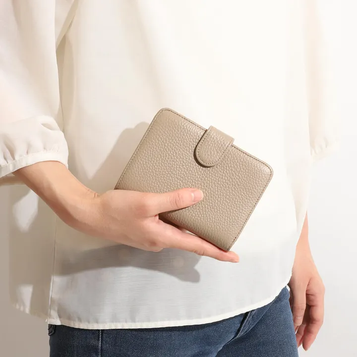 【カード15枚ミニ財布】二つ折り コンパクト 大容量 本革 レディース ミドルウォレット 有名雑誌掲載 / HW3 グレージュ