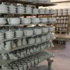 皿に絵付けをしている女性の手つきの見事さに感嘆します。中心から放射線状に広がる模様は、ほとんどの工房がこの柄で絵付けするほどオーソドックスです。
