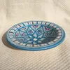 ■サイズ 直径 約14.5cm 高さ 約4cm チュニジアでおなじみ、ナブールの陶器です。 食べたあとでも食卓を華やかに演出してくれます。チュニジアの職人が1点1点手で絵付けしております。 取り皿や薬味などを置くのにちょうどいいサイズ。 チュニジアで陶器の町といえば「ナブール」 鮮やかな手つきでロクロを回し、その後で皿に絵付けをしている女性の手つきの見事さに感嘆。 たくさんある中でもよりすぐりの皿ばかりを選んでおります。 ※日本製と較べ、比較的焼成温度が低いので、欠けたり割れたりしやすいものです。 お取扱いには十分に気をつけてください。 ひとつひとつ手作業で成形・絵付け・仕上げの工程を行いますので、製品により絵付けの色むら・ズレ・にじみ・形にばらつきがありますが味はあります。 またお使いになっているパソコンやブラウザによって商品の色合いが多少違って見える事をご了承下さい。 ※初めてお取引の方は、セットをご用意していますのでそちらの商品を先にご購入ください。