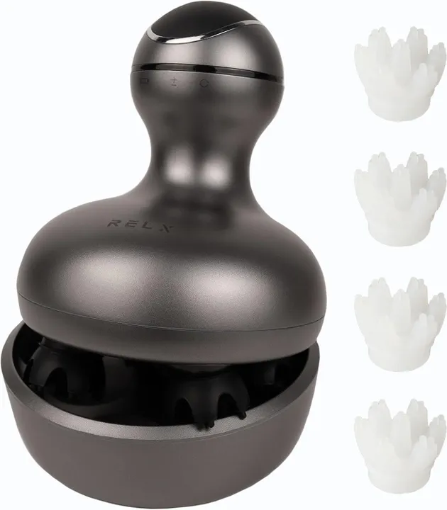 【プロのサロン技術を再現した本格RELX(リラクス) ヘッドスパ】 髪に絡みにくくしっかり頭皮をつまみ上げ揉みほぐし、首や肩、気になるボディケアにも気持ちよくお使い頂けます。プロのヘッドスパサロンのような体験をご自宅でできる本格ヘッドスパ。詰まった頭皮の汚れを綺麗に洗い流します。正しく頭皮をケアすることによって美しい髪と美肌へ導きます。 【人間工学に基づいた独自の3D設計】人間工学に基づいた独自の3D設計とブラシの先端についた合計84個の突起で、プロのヘッドスパサロン技術を再現しました。自宅で簡単頭皮エステ体験ができます。本体にボタンは1つと簡単操作。4つのモードが選択でき、スピードと回転機能をその日の好みに合わせて毎日の頭皮ケアに最適です。※長時間の使用を防ぐため、動作開始から10分経過すると自動的に電源が切れます。 【2種類のアタッチメント】必要に応じて使い分けれる2種類のアタッチメントをご用意しました。頭皮・ボディ用には人間工学に基づいて設計された弾力性のあるシリコンブラシをおすすめします。フェイス用はよりお肌に優しいシリコンブラシを採用。お肌に触れた時の刺激を軽減した当社オリジナルブラシです。たるみやむくみが気になる方がお顔のリフトアップケアをする際にご使用ください。ぜひ体感してみて下さいませ。 【濡れた髪、乾いた髪にも】本体は防水仕様なので、シャンプー時にも使用可能です。お風呂だけでなく、テレビや動画を見ながらでもご使用頂けます。またRELX(リラクス) ヘッドスパは機能だけでなく、滑らかなさわり心地でしっかりとした持ち心地、高級感ある見た目にまでこだわりました。ご家族や友人など、大切な方へのプレゼントにも最適です。 【保証書とセット内容】本体・充電台・2種類のアタッチメント・USB充電コード・取扱説明書(保証書付き) ※ 本体のみ防水仕様なので充電する際、充電台は水まわりや湿気のある場所を避けて充電してください。 ※本商品にはACアダプターは付属されておりません。充電時には、定格電源DC:5V−1A以下のものをご使用ください。 ※スマートフォンなどの急速充電は出力が強すぎる場合があります。(電源が入らなくなる等の故障の原因になります。) ※定格電源DC:5V-1A以外のものをお使いになられて故障した場合、保証期間内でも保証対象外となります。 【注意事項】植毛や部分かつら(エクステンションを含む編み込みなど)を使用されている方はご使用いただけません。