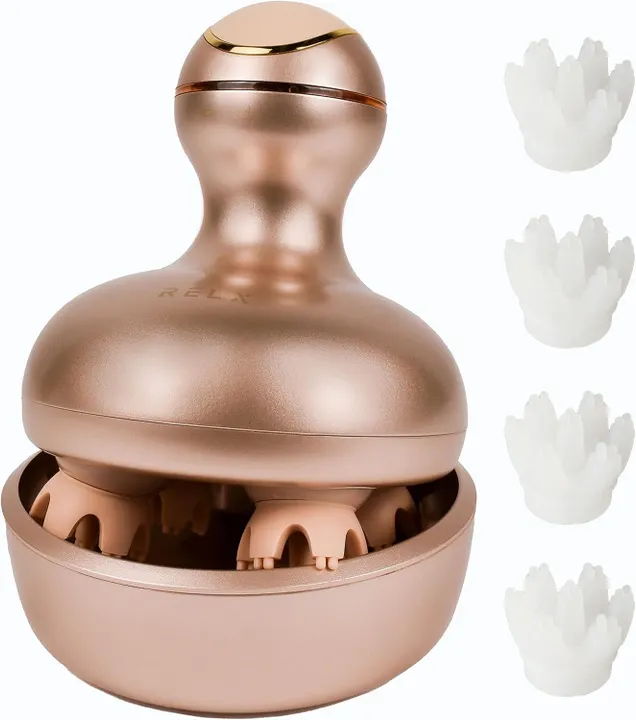 【プロのサロン技術を再現した本格RELX(リラクス) ヘッドスパ】 髪に絡みにくくしっかり頭皮をつまみ上げ揉みほぐし、首や肩、気になるボディケアにも気持ちよくお使い頂けます。プロのヘッドスパサロンのような体験をご自宅でできる本格ヘッドスパ。詰まった頭皮の汚れを綺麗に洗い流します。正しく頭皮をケアすることによって美しい髪と美肌へ導きます。 【人間工学に基づいた独自の3D設計】人間工学に基づいた独自の3D設計とブラシの先端についた合計84個の突起で、プロのヘッドスパサロン技術を再現しました。自宅で簡単頭皮エステ体験ができます。本体にボタンは1つと簡単操作。4つのモードが選択でき、スピードと回転機能をその日の好みに合わせて毎日の頭皮ケアに最適です。※長時間の使用を防ぐため、動作開始から10分経過すると自動的に電源が切れます。 【2種類のアタッチメント】必要に応じて使い分けれる2種類のアタッチメントをご用意しました。頭皮・ボディ用には人間工学に基づいて設計された弾力性のあるシリコンブラシをおすすめします。フェイス用はよりお肌に優しいシリコンブラシを採用。お肌に触れた時の刺激を軽減した当社オリジナルブラシです。たるみやむくみが気になる方がお顔のリフトアップケアをする際にご使用ください。ぜひ体感してみて下さいませ。 【濡れた髪、乾いた髪にも】本体は防水仕様なので、シャンプー時にも使用可能です。お風呂だけでなく、テレビや動画を見ながらでもご使用頂けます。またRELX(リラクス) ヘッドスパは機能だけでなく、滑らかなさわり心地でしっかりとした持ち心地、高級感ある見た目にまでこだわりました。ご家族や友人など、大切な方へのプレゼントにも最適です。 【保証書とセット内容】本体・充電台・2種類のアタッチメント・USB充電コード・取扱説明書(保証書付き) ※ 本体のみ防水仕様なので充電する際、充電台は水まわりや湿気のある場所を避けて充電してください。 ※本商品にはACアダプターは付属されておりません。充電時には、定格電源DC:5V−1A以下のものをご使用ください。 ※スマートフォンなどの急速充電は出力が強すぎる場合があります。(電源が入らなくなる等の故障の原因になります。) ※定格電源DC:5V-1A以外のものをお使いになられて故障した場合、保証期間内でも保証対象外となります。 【注意事項】植毛や部分かつら(エクステンションを含む編み込みなど)を使用されている方はご使用いただけません。