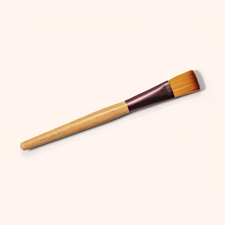 クレイマスクを顔やデコルテになめらかに均一に塗ることができるマスクブラシ。ムーンバスの金色のロゴがエンボス加工された竹の持ち手に、柔らかい人工毛がセットされています。