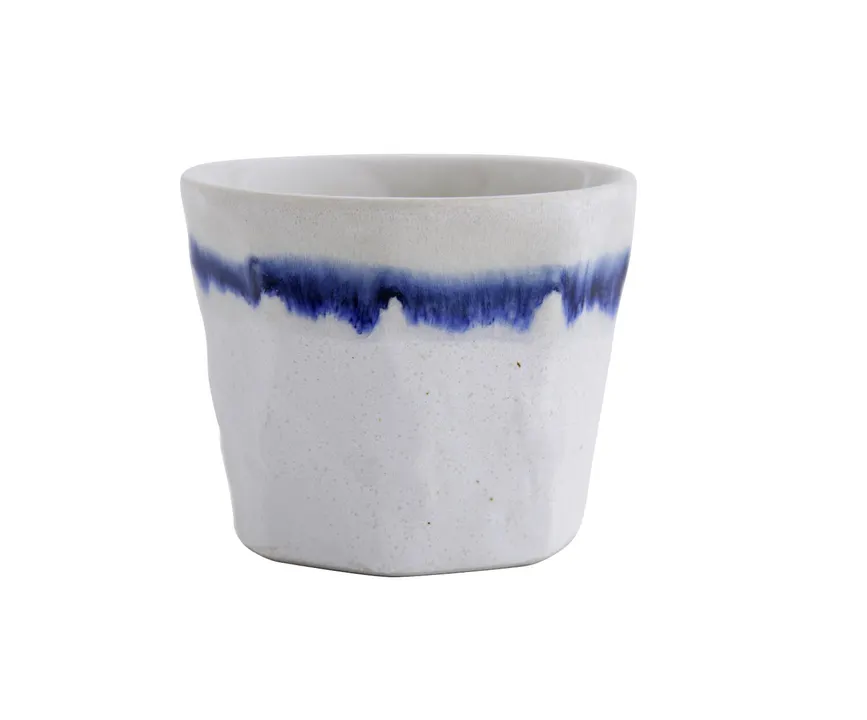 垂らし込みの釉薬が描き出すのは、滲んだ刷毛目の1本ライン。涼やかで凛とした佇まいです。 まるで遠くに連なる嶺の稜線を思わせ、食卓に清々しい風景を添えます。 岩肌のようなゴツゴツとした表面のデザインも、それぞれに個性があって新鮮です。 “蕎麦猪口”としておりますが、フリーカップとして沢山の出番が期待できそう。 お茶やコーヒーなどの飲み物、副菜などのおかず、さらにはフルーツやアイスなどデザートカップとしても◎ シンプルなデザインは和洋問わず馴染み、手持ちの食器とも合わせやすいのが魅力な和食器シリーズには他に茶碗もございます。 ※こちらの商品には釉薬の表面に「貫入」と言われる細かいヒビ割れがございますが、使用している釉薬の特性によるものです。また、発色や刷毛目の出方は個体差がございます。手作りならではの風合いとしてお楽しみください。