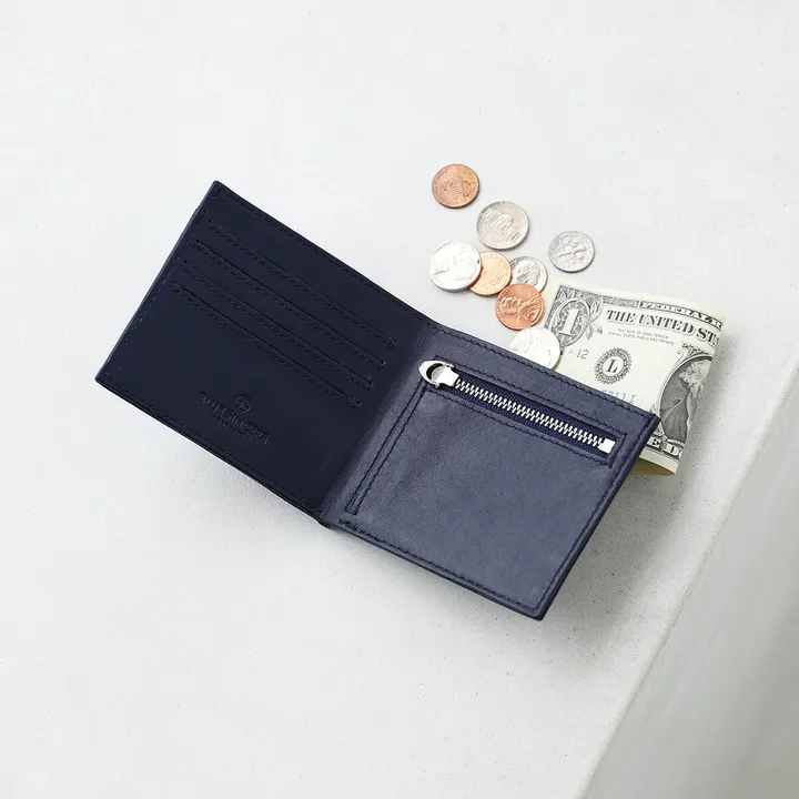 【たった0.9CMでこの容量】二つ折り財布 メンズ 小銭入れ付き カードも収納 / HW4 ネイビー×ネイビー