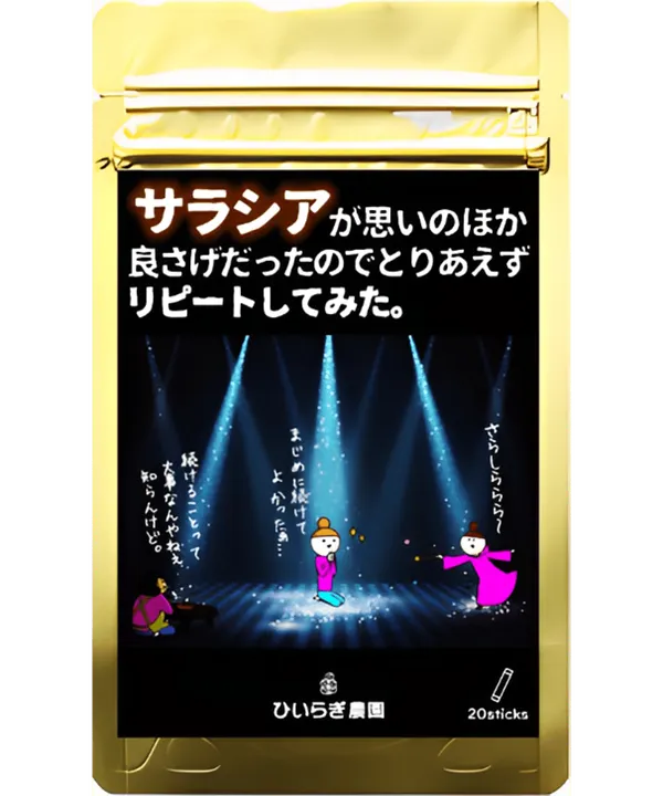 「ルイボスティーにサラシアをいれてみた」がもっと欲しい、という方向けの商品になります。 インスタントティーが20本入っています。 ◉サラシアとは サラシアはインドなどの熱帯地域に自生する植物で、古くから現地では飲料や食器として利用されてきました。 伝統的には、王侯貴族が食事の際に利用していたともいわれる、長い歴史を持つ植物です。 日本でも近年注目され、さまざまな料理や飲料に活用されています。 ◉特長と楽しみ方 ルイボスティーにブレンドされたサラシアは、独自の風味と香りを引き立て、すっきりとした飲みやすさが特長です。 ノンカフェインで、幅広い年代の方に楽しんでいただけます。 ティーとしてそのまま飲むだけでなく、インスタントタイプなので外出先や食事の際に手軽に取り入れられます。 ◉味わい ルイボスティーならではのまろやかでクセのない味わいに仕上げています。 サラシアとのブレンドによる香ばしさも感じられ、リラックスタイムや日常のひとときにぴったりです。 ◉飲み方 スティック1本をお水やお湯に溶かしてお召し上がりください。 普段飲まれるお茶と同じ感覚で、日常の飲み物として楽しめます。 お食事の際に一緒に飲むと、食卓に彩りを添えるひとときとしてもおすすめです。