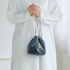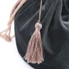 ベロアの光沢が美しいフリンジ付のポーチバッグ DG