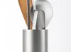 キッチンツールをコンパクトに収納できるツールコンテナです。 特長は、外せる底面です。 底面はシリコーンゴム製なので、ツールを出し入れする時の音が気になりにくく、押すだけで外れるのでお手入れが簡単です。 底に溜まった汚れも綺麗に洗えます。