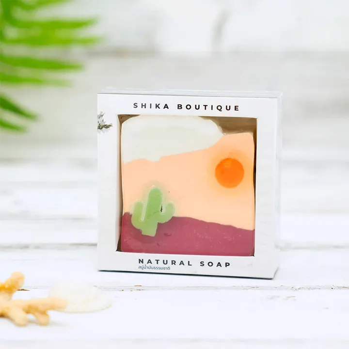 日本初上陸、タイ発のナチュラル成分を使用した手作りのスキンケアブランド「SHIKA」 ブランドを始めたタイのご夫婦の奥様の英語名が日本語訳すると「鹿」だったことで、 その響きがが気に入り「SHIKA」と名付けられました。 自然の美しさは時によって様々。その瞬間の美しさを表現したのがこのアートソープです。 天然素材を使用し、7種類の高品質な天然オイルをブレンドして、職人さんの手で一つひとつ 丁寧に作られています。 有害な化学物質や防腐剤を含まないお肌にやさしい成分と、自然由来の香りが調和し、 使うたびに癒されます。 お部屋に飾って香りを楽しむのもおすすめです。 店舗にたくさんのデザインを並べてディスプレイすると可愛いですよ。 ※一つ一つ手作りのためデザインや形に個体差がございます。 (上部のシェルや雲のモチーフがない、色が異なっているなど) 【 10種のバリエーション 】 ・スターリーナイト 心地よい夜の風のようなすっきりとした香り ・ドルフィン ほんのりスウィートな夕暮れの海の香り ・オーロラ ベリーのような甘酸っぱい香り ・アクアマリン ビーチで感じる爽やかな風のような香り ・シーサンドバイオレット 香り高く、スーッとするフローラルな香り ・ツインマウンテン 温かみのある甘い香り ・サンセット ロマンチックで優しい香り ・ネロ みずみずしくて甘酸っぱい、可愛い香り ・シーシェル 穏やかに潮風を感じるような香り ・ロッキー サボテンと砂漠という情景に似合うスパイシーな香り 使用可能箇所:顔・体 機械練 枠練 化粧せっけん ・人口着色料不使用 ・防腐剤不使用 ・天然由来成分使用 ・オイル含有量65% ※表示数量を超える在庫や、詳しい納期につきましてはメッセージよりお問い合わせください。 ※初回のご注文に限り1セット~送料無料となります。ご注文時には送料が含まれますが発送時に無料に変更いたします。