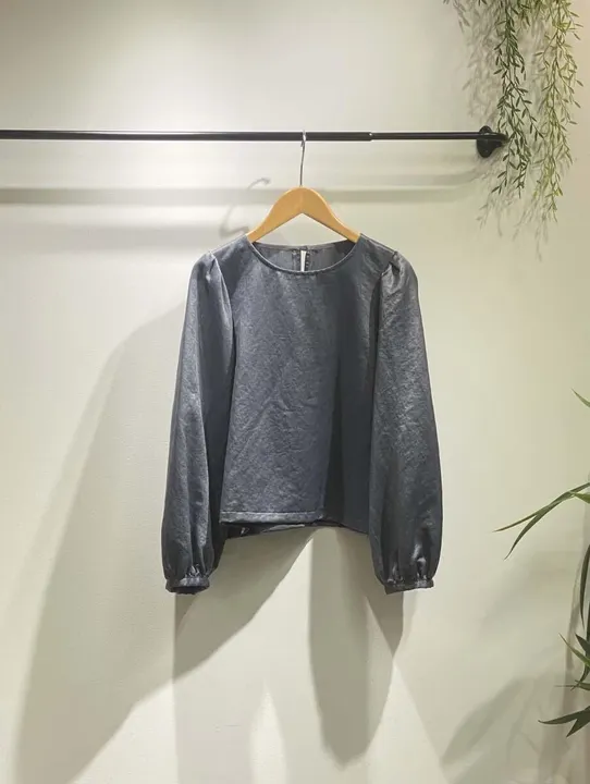 レザー見えのサテン素材を使用したトップス。 短めの丈が今年らしく、スタイリングしやすい一枚。 ボリュームスリーブで女性らしく、セットアップのタイトスカートと合わせて一段上のスタイルを。 インナーを合わせても着られる襟ぐりと袖口にしています。程よい光沢のヴィンテージ感で上品な大人な装い。 合成皮革ではないレザー調素材です。ナイロン100%のサテンをベースにコーティングとタンブラー加工で ヴィンテージな雰囲気を実現したハイテク感あふれる素材。通年使用可能です。