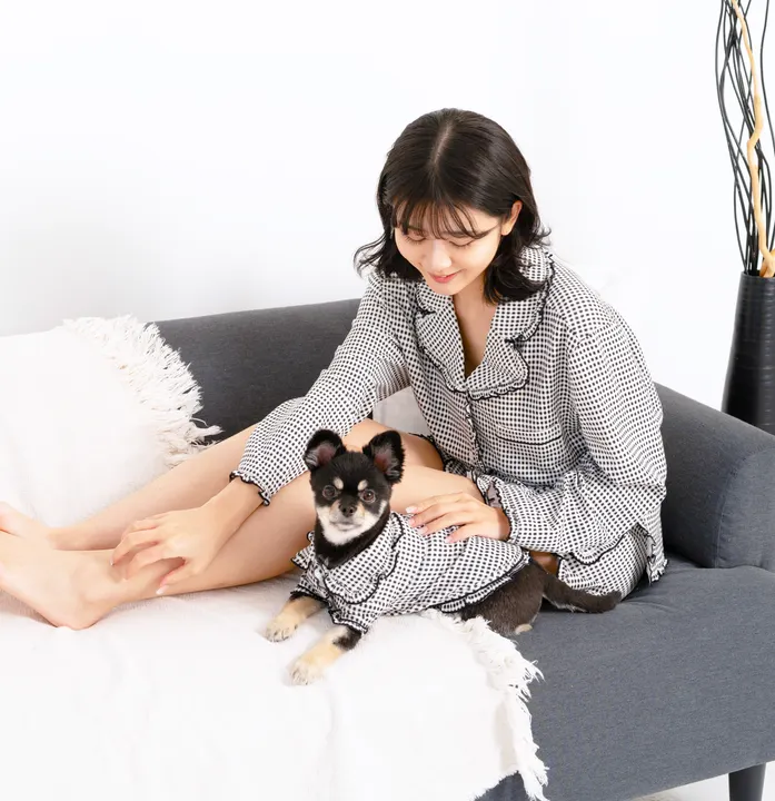 パジャマ & ペアルックブランドです。 とろける着心地と、 愛犬も人もストレスフリーな機能性充実の特別なおうち服。 ペアルックでも犬服、人服単品でも 満足していただける着心地とデザイン。