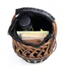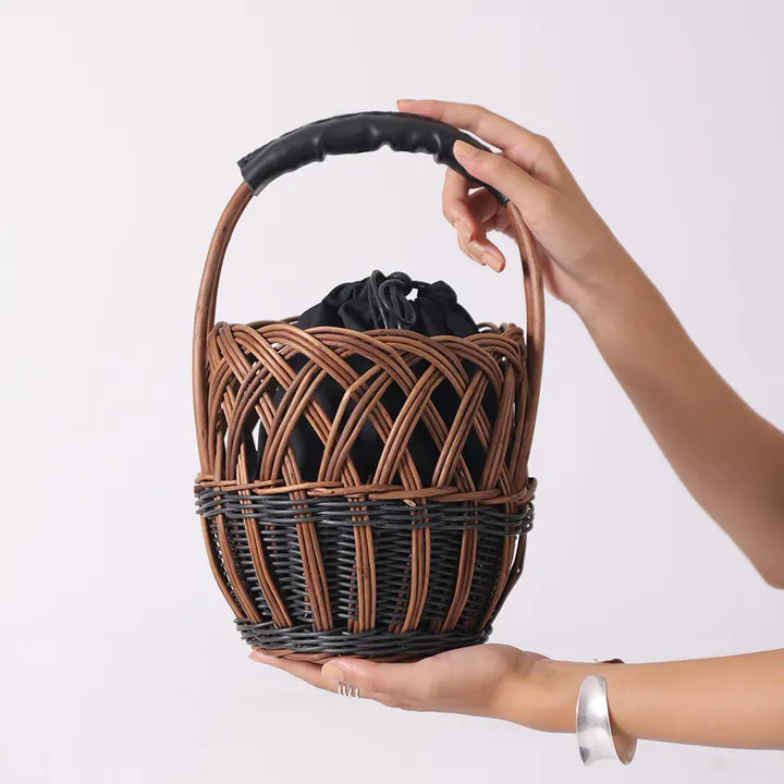 天然素材の柳とポリプロピレンコードの組み合わせにより、立体的な編み柄が引き立つデザイン。膝上にちょこんとのる小ぶりなサイズですが、スマホにお財布、化粧ポーチ、ペットボトルが入ります。付属の巾着は見せたくないモノや貴重品の収納に。そのまま違うバッグに入れ替えできて便利です。 ウィロー(柳)は軽量で丈夫な天然素材です。高温処理をすることで皮の色と中の灰汁が上面に出て多少の光沢がうまれます。はじめは赤っぽい色のようですが、時が経つとともに落ち着いた飴色になっていくため、変化を楽しんでいただけます。それと同時に防虫処理にもなる伝統的な製法で作られています。 細かい編みはひとつひとつ職人たちによるハンドメイドで生産しています。 *ポーチ取り外し可能