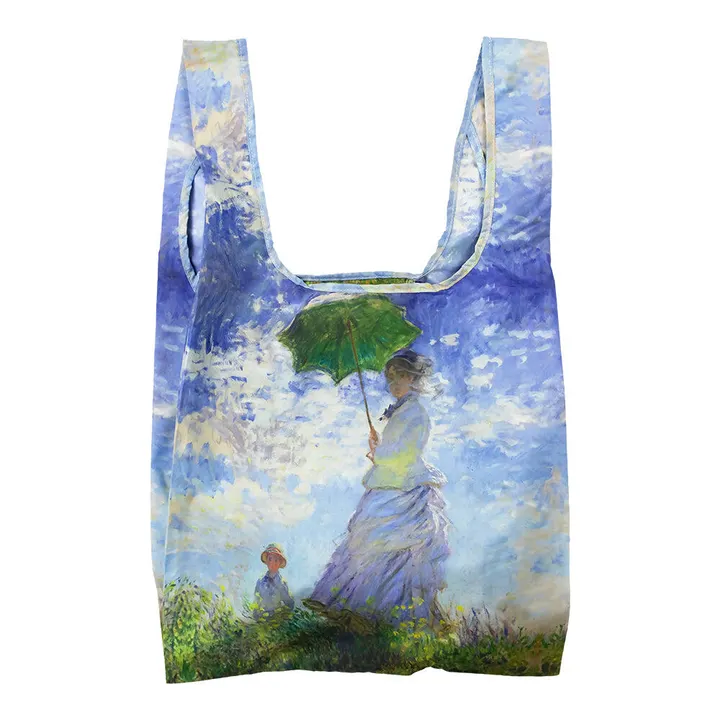 モネが1875年に描いた人気作品「Woman with a Parasol(散歩、日傘をさす女)」。優美な色彩がフランスらしさを感じさせます。 ミュージアムコレクション 美しさと時代を超越した価値を考慮して慎重にセレクトされた作品が、100%ペットボトル再生生地に鮮やかにプリントされています。 風景画から浮世絵までテイストの違う9柄から、自分にぴったりの一枚を見つけてください。 ミディアム 100%ペットボトルを再生した生地を使用したエコバッグ。ミディアムサイズは、約6本のペットボトルからできています。 肩に掛けて持つことができ、どんなシーンにも活躍する大容量サイズ。 KIND BAG / カインドバッグについて カインドバッグの特徴の一つが、ユニークでおしゃれなデザインです。カラフルな色使いやユーモラスなデザイン、女性だけでなく、男性にお勧めの柄まで幅広くラインナップ。お気に入りのお買い物バッグなら、きっと毎日のお買い物も楽しい時間になるはず。 サイズ 約 W39 ×H64 ×D17 39 cm 重量 約 50 g 素材 ポリエステル(リサイクルPET素材100%) 耐荷重 約 20 kg 洗濯 洗濯機OK(30度まで) 漂白剤などの使用、タンブラー乾燥はしないでください。 注意 ※折り畳んだ時の柄の出方は商品によって異なります。 ※商品写真はできる限り実物の色に近づけるよう徹底しておりますが、 お使いのモニター設定、お部屋の照明等により実際の商品と色味が異なる場合がございます。