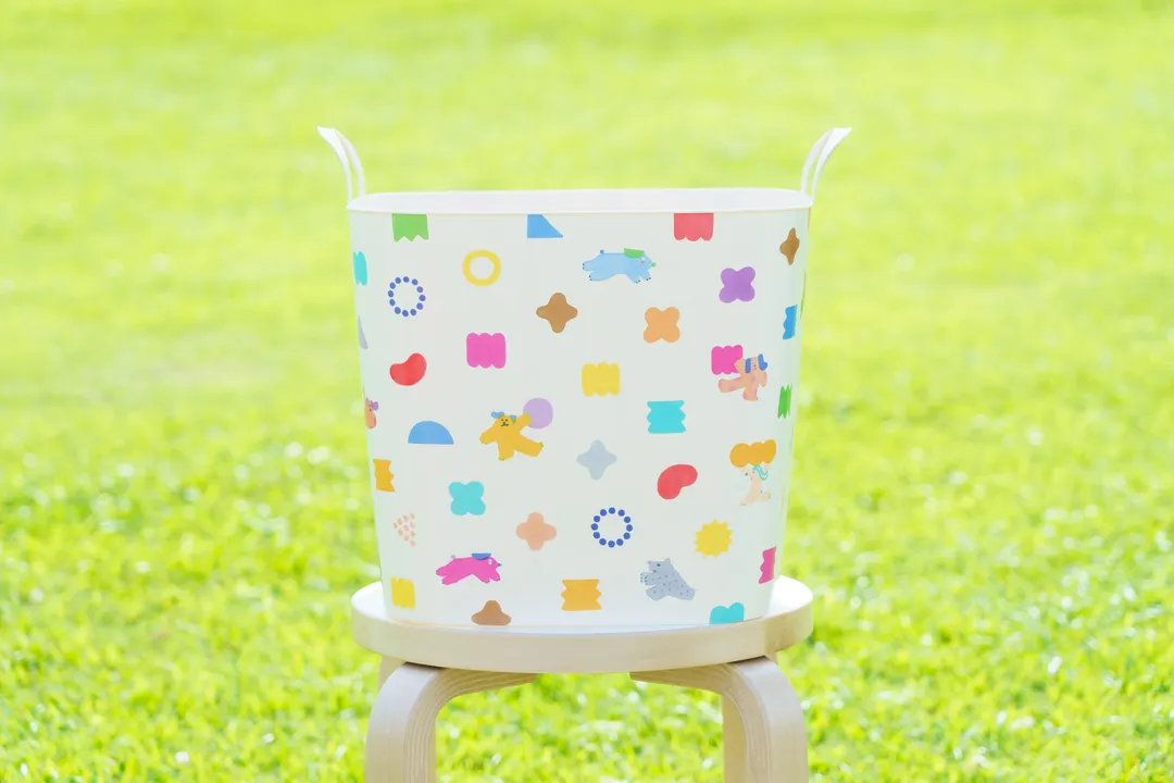 AIUEO とのコラボレーションシリーズ 出し入れラクラクのポンポン収納。投げ入れるだけなので、小さなお子さんでも、ズボラさんでも お部屋やキッチンなどキレイにすっきり片づけれます! また別売りのフタ、「onbaquet by mooq」を載せれば、収納物の目隠しはもちろん、ちょっとしたサイドテーブルにもなります。 木目調でどのインテリアにも馴染みやすく、 お子さんがお絵描きする時の台にしたり、おやつや飲み物を置いたり、ソファー横や、アウトドアなどでも活躍します! ◆stacksto, In-Patterns スタックストー,インパターンズ 無数にある柄や模様の中から、お気に入りに出会えた時のあの高揚感を収納でつくれないだろうか。素材の柔らかさが特徴のstacksto, baquetの In-Patternsプロジェクト(柄入りバケット)はそこから始まり、バケットの製造国であるフランスはもとより、特殊な印刷や樹脂フィルム製造を手掛ける、世界でも希少な製造元らとの協業によって生まれました。 印刷を「載せる」のではなく、図版の持つ質感まで四角い形となって表現される。 かもし出す雰囲気がインテリアの中で個性を発揮する、今までにない収納をつくりました。 ◆AIUEO (アイウエオ) 「ハッピーをあなたから」 プレゼントしたくなる。ワクワクする。 そんな気持ちを大切に、ものづくりをしている雑貨ブランド。 グリーティングカードやレターセット、ラッピング用品など 誰かに送る為の物を中心に、シールや手帳、オリジナル生地などいろいろなものを作っています。 カラフルでかわいいキャラクターたちがハッピーな気持ちにしてくれます。