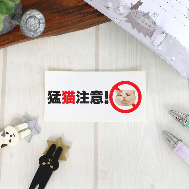 お家の扉に貼りたくなる、猛犬ではなく「猛猫注意!」のステッカーです。