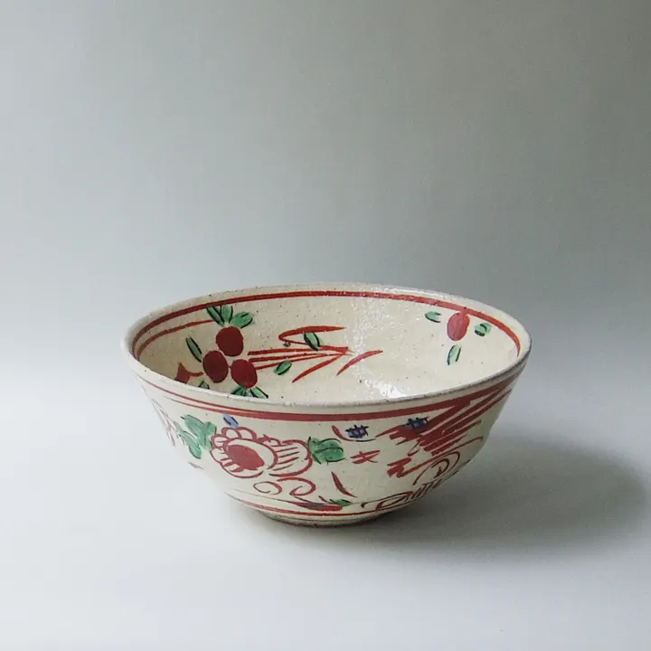 兵山窯の手描きによる大丼。一点一点手描きの赤絵大丼は「ハレのうつわ」を思わせる逸品。 大ぶりサイズなので食卓に置くだけで食事時間が楽しく華やぎます。 ■兵山窯 土岐市駄知 駄知の土地で三代目となるヤマ兵製陶所は、様々な土を扱い表情豊かなうつわを作っています。粉引など手仕事の技術をいかしながら独自のセンスが多くの人々を魅了する窯元です。