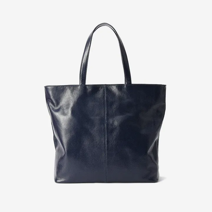ポーチ付き 本革 大判トートバッグ ネイビー