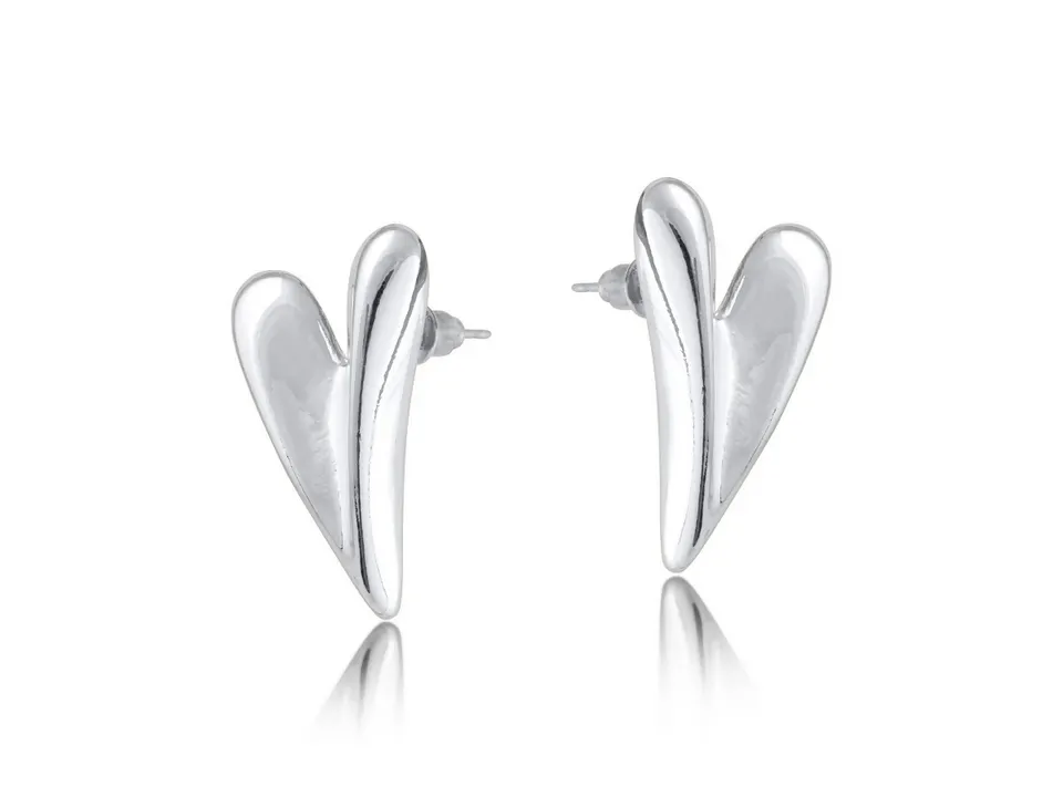 3273 CASSIA フォールド ハート スタッド ピアス Silver