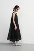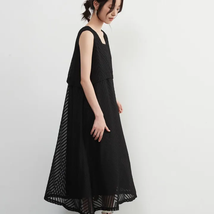 KNXO522・ジャガードシフォン・レイヤード風フレアワンピース・2枚仕立て風ドレス・ノースリーブワンピース・裏地付き 8月中旬入荷BLACK/FREE