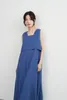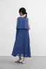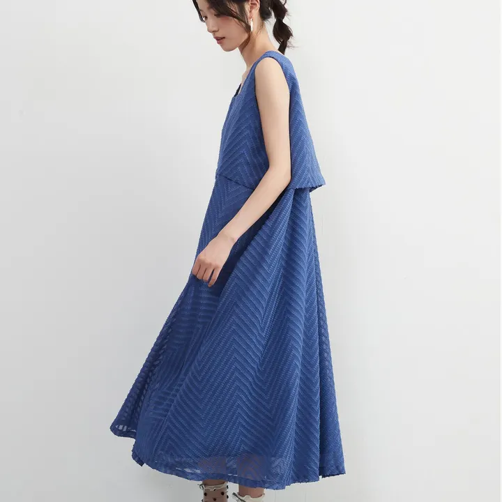 KNXO522・ジャガードシフォン・レイヤード風フレアワンピース・2枚仕立て風ドレス・ノースリーブワンピース・裏地付き 8月中旬入荷BLUE/FREE