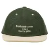 フロントに『笑う門には福来る』のメッセージ刺繍。温かみのあるコーデュロイで季節感をプラス。ツバと配色のカラーは大人カジュアルにハマります。