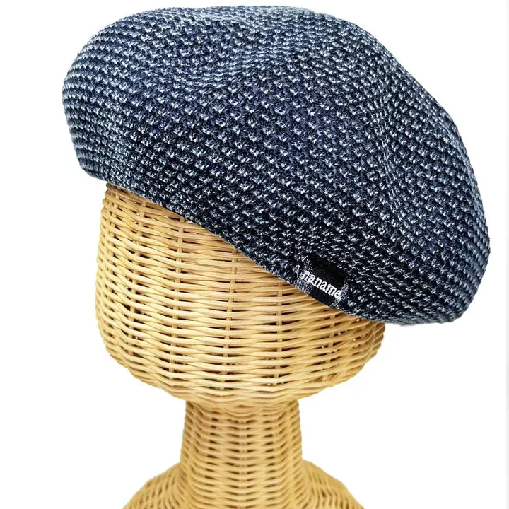【naname.】久留米絣 デニム サーモ ベレー帽 サスティナブル 福岡 伝統 帽子 NAVY