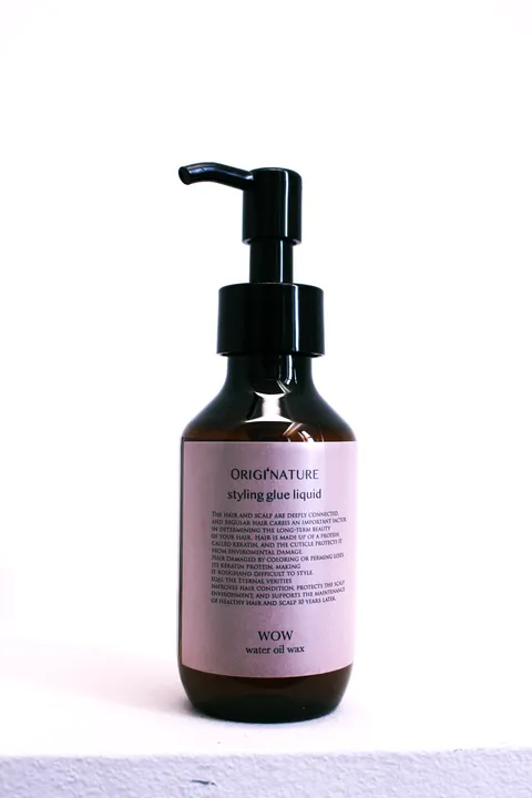 ウォーターオイルワックス オリジネイチャーのスタイリング グルー リキッドはオイルよりもトロミがあり、グリースよりも柔らかく、ジェルのように固まらない新処方のWOW「ウォーターオイルワックス」という面白いテクスチャーを実現しました。 開発にはKAMI CHARISMA2024に選ばれた美容師たちが監修。美容師様の要望を重視しメーカーが作りたいものではなく、現場が要望するまだ無いスタイリング剤を作るというコンセプトで「スタイリンググルー」シリーズは生まれました。開発から発売まで3年という年月をかけて完成した新感覚のスタイリング剤をより多くの美容師様の日々のサロンワークからクリエイティブな作品づくりにご活用頂けることを楽しみにしています。付けて直ぐはジェルのように。しばらくすると柔らかい指通りのテクスチャーに。時間と共に変化するテクスチャーは髪の手触りを柔らかくして水分の蒸発を防ぐため、まとまりある スタイリングと抜群のツヤ感を与えます。