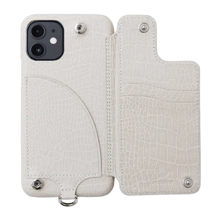 2023年9月より弊ブランドはDemiurvo(デミウルーボ)改めDEMIU(デミュウ)に改名いたします。 それに伴い、DEMIUの名を配したブランドネーム・ロゴが採用されます。 一部商品に関しては、Demiurvoとして引き続き販売いたしますが順次モデルチェンジ予定です。 何卒、ご理解のほど宜しくお願い致します。 フランスのメゾンブランドも小物やバッグなどに採用する最高級フレンチレザーを使用しており、持つ人を高揚させる仕上がりの手帳型ケースPOCHE Lizard(ポシェ リザード)。 マグネットを使っていないのでカードなども安心して入れることができます。 カードポケット×1、裏ポケット×1 ※iPhone12 miniおよび13miniの背面のカード入れに関してですが左側(ケース装着側)の仕切り部分と、右側の裏ポケットにはカードはお入れいただけません。右側のカード入れにはカード段が1つの仕様となります。ご注意ください。 ※ストラップは別売りです。 ー仕様ー・素材本体:牛革ケース部分:ポリカーボネート金具:ニッケル・重量約70g