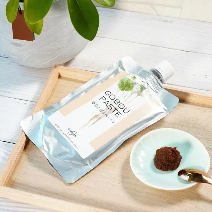 ミネラル、食物繊維が豊富なごぼうのペースト 大地のミネラルたっぷりのごぼうを皮ごと、アクを抜かずに高温・高圧で長時間“無水炊き”し、世界初のごぼう100%のペーストに仕上げました。ポリフェノールなど、第七の栄養素といわれるファイトケミカル(抗酸化物質)を豊富に含みます。トーストしたパンに塗ったりヨーグルトのトッピングにしたり、またさまざまな料理(煮物や生姜焼きのタレ、お菓子など)の隠し味としても、日々の食卓で活躍する便利なペーストです。 特徴 厳選された無農薬・有機栽培のごぼうを使用 本品には、熊本県産の無農薬有機栽培“菊池ごぼう”を使用(有機JAS認証)しています。20年以上も無農薬有機肥料で栽培している生産者の方から届けられる、新ごぼうのみを使用しています。そのため年1回の製造で、毎年数量限定で販売しています。 アクを抜かず、皮ごと、切らずに! こだわりの特殊製法 ① ミネラルや食物繊維が集中している“皮”と、ポリフェノールが含まれている“アク”をそのまま煮ています。② ごぼうは生のまま切ると、中に含まれる酵素の働きでポリフェノールが壊れてしまうため、切らずに加熱しています。そうすることで、切った場合の約2倍ものポリフェノールを含みます。③ ポリフェノールの流出を防ぐため、水を一滴も使わずに、繊維が溶けるほどの高温・高圧の特殊釜で長時間炊き込みます。 誰でも食べやすい甘み ごぼうを長時間炊いた甘みは、ごぼうに含まれている天然オリゴ糖“イヌリン”が加熱されて生まれるもの。砂糖を一切加えていないのに、糖度25度前後もの甘さがあります(メロンは14度)。お子様からご年配の方まで、身体に負担をかけることなく召し上がっていただけます。 トーストしたパンに塗ったりヨーグルトのトッピングにしたり、カレーや生姜焼きなどのタレ、さまざまな料理の隠し味としても、日々の食卓で活躍する便利なペーストです。 メディアでも取り上げられています 「姿煮ごぼうペースト」は食健商品を代表する人気商品のひとつ。メディアでも多数取り上げていただいています!