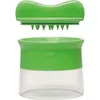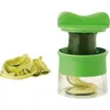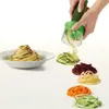 野菜をくるくるヌードル状にカット。野菜ヌードルはヘルシーな食事にも。 ズッキーニなどの細長い野菜からポテトのような丸いものにまで使えるオープンな形。使用中は手を守り収納時にはキャップとして使えるフードホルダー。野菜を無駄なく使えるよう持ちやすい形にデザインされたフードホルダーのグリップ。
