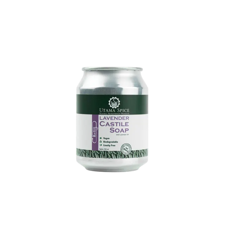 カスティールソープ ラベンダー の詰め替え用です。 環境をに配慮して、、リサイクル効率が高いアルミ容器を使用しています。 アルミ容器なので所々へこみがございます。 ご了承願います。 容量:230ml