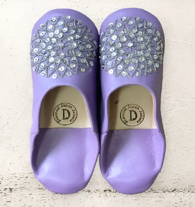 ・バブーシュとは革でできた室内履きです。 ・GJJが革と制作にこだわったオリジナルバブーシュです。 ・アトラス山脈の高地に咲く香り豊かなラベンダー畑をイメージして作りました。気品のある素敵な一足です。 ☆革の特長☆ なめし加工を丁寧に行った機械仕上げの羊革のみを使用しております。 革本来の匂いはありますが、獣臭はありませんのでご安心ください。