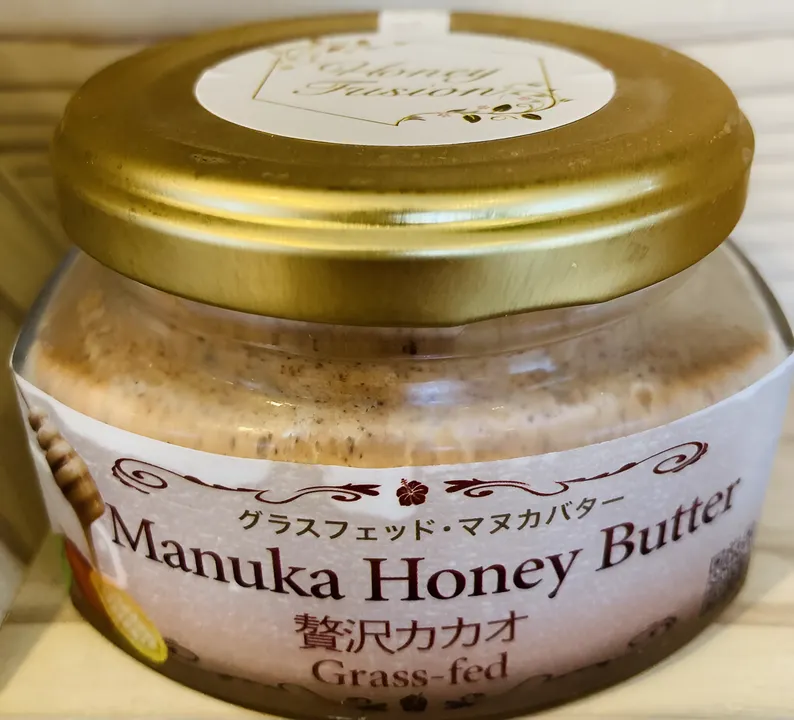 マヌカハニーには、普通のはちみつにはないメチルグリオキサールという特別な成分が含まれています。 ハニーフュージョンのマヌカハニーは、非加熱のローハニーで、砂糖や添加物は一切使用していません。 そのマヌカハニーと発酵バターを使ったマヌカハニーフルーツバターシリーズです。 ■生産者の声 沖縄の魅力的なフルーツや野菜なのに、規格外で市場に出せない農産物と、ニュージーランドで「万能の木」と呼ばれるマヌカをフュージョンさせたらもっと良いものになるんじゃないかと、NaoとGlennが生み出したハニーフュージョンの商品。 Glennの故郷であるニュージーランドの養蜂家のサポートと、Naoの故郷である沖縄農家さんのサポートをしたいという想いが込められています。 それぞれの故郷に恩返しができるように「安心、安全で美味しい製品」をこれからも開発をしていき、マヌカハニーを通して皆様の健康をサポートし、幸せと感動をお届けしていくことが、私達の願いです。