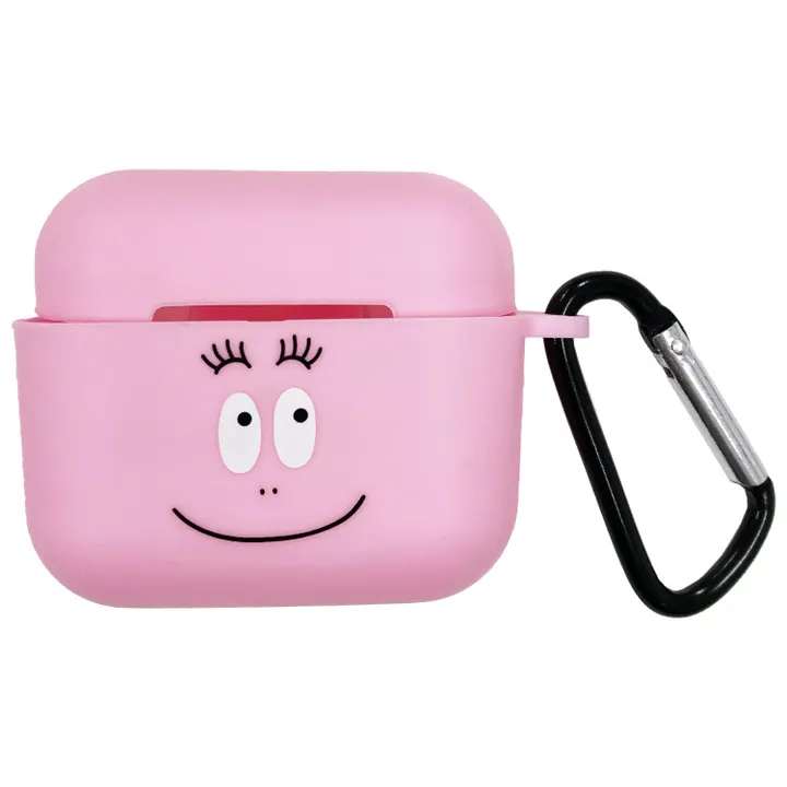 【全面保護できるAirpodspro用ケース】バーバモジャデザインのかわいいAirpods用ケースです。第3世代対応です。全面保護カバーになっているので、キズ防止・耐衝撃・防塵などからAirpodsを守ります。 【カラビナ付きで持ち運び◎】便利なカラビナが付いているのでバッグやポーチなどにつけて持ち運びいただけます。紛失防止にも役立ちます。 【ワイヤレス充電ができる】ケースカバーを装着したまま充電可能です。 【デザインは全2種類】バーバパパ(ピンク)とバーバモジャ(ブラック)の全2種類のデザインをご用意しました。友人や恋人とオソロやキャラ違いで持っていてもかわいいです。