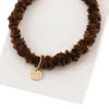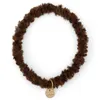 髪を優しく結びたい方におすすめの、ふわふわとやわらかい印象のヘアゴム 「チョコレートブラウン」は実り多く、うつろいゆく季節を感じる、深みのあるカラー。コートなどの色と揃えてまとめたい時にも。 長めの毛足が特徴的で、やわらかい印象のヘアゴムです。ふわふわの繊維が髪を優しくキャッチしてくれるので、ゆるく結んでも取れにくいヘアゴムです。 髪を優しくまとめたい方や、しっかり結んだ際、髪にヘアゴムの跡が残ってしまうのが気になる方(※)はぜひ試してみてください。ゆるめのお団子やルーズヘアにもおすすめです。 優しい繊維素材を選んでいるので、ゴムを外したあと手首につけておいてもチクチクしません。 ※髪に跡になりにくいようお作りしておりますが、効果には個人差があります。 オリジナルチャーム付きなので、手首につけても素敵にキラリ。うっかり机に置き忘れてもひと目で自分のものと分かります。 1本1本、手作業でゴムリングの接着加工をしています。金属のパーツでゴムをかしめているヘアゴムの場合は、髪の毛が引っかかると切れてしまいますが、当社の製品は、つなぎ目がほとんど分からず、髪の毛にも優しいです。 直径:約50mm、太さ:約6~7mm、プレートの直径:約8mm 材質:ポリエステル・ナイロン・天然ゴム・真鍮 日本製