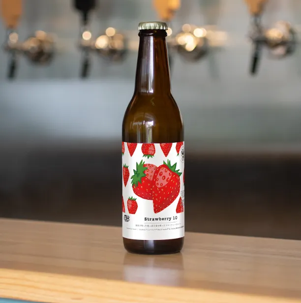 鹿児島県の南部、温暖な指宿市でずっとイチゴを栽培されている「前田園芸」があります。イチゴ栽培の名人、前田さんが毎年栽培されている、さがほのかに加え、今年は「すず」や「よつぼし」といった品種にも挑戦されています。いつ食べても凝縮された甘さと複雑な香りに驚かされる前田さんのイチゴは、直売所に並ぶと同時に売りきれる、地域の超人気商品。徹底した品質管理をされている前田さんだからこそ発生してしまう、少し柔らかくなってしまったイチゴや、気温が上がったことで、保存期間が短くなってしまったものを、スタッフがハウスから収穫させて頂き、今年もクラフトビールをつくりました。 指宿の真っ赤なイチゴをふんだんに使用した、奥深い香りのFruit Aleをお楽しみください。