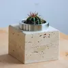 サボテンハウスマーブル|サンプル 天然大理石×ステンレス 素材にこだわった上質な植木鉢 多肉植物に最適 特許構造で簡単・キレイに植物育成 トラバーチン|ベージュ