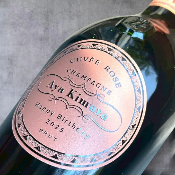 – 一流を知る人に贈る、優美なロゼと華麗な名入れの共演 – ビジネスギフトやVIPノベルティにふさわしい、確かな存在感 洗練されたエレガンスと豊かな果実味で、世界中のセレブリティを魅了するローラン・ペリエ ロゼ。 その至高のロゼシャンパーニュに、お名前やロゴを彫刻し、特別な価値を宿す一本へと仕上げました。 ロゼのお色に合わせた品のあるサーモンピンクで彩色を施します。 フランス・シャンパーニュ地方のメゾンが誇る伝統と技巧。 その魅力を損なうことなく、丁寧に彫刻を施し、さらにクリスタルストーンで上品な煌めきを添えることで、目を引くラグジュアリーボトルに。 企業周年・店舗オープン・VIP顧客への贈呈・高級ラウンジの演出に。 「特別な一本」をお探しの法人・店舗様に、自信を持っておすすめします。 ■ 彫刻デザインについて デザイン案はご注文後にメールでご確認いただけます。 ご希望のフォント・レイアウト・メッセージなども対応可能。 修正は納得いくまで何度でも。 「世界に一本の特別なボトル」を、職人の手で丁寧に仕上げます。 ■ 納期の目安 ご注文〜デザイン確定後、約2-3営業日以内に発送 お急ぎ対応も可能です(要相談) ■ ご注文時の注意事項 ・彫刻内容はご注文時または後日メールでご指定いただけます。 ・飲酒は20歳以上の方に限られます。未成年者への販売はできません。 【法人様まとめ買い・ロゴ対応も承ります】 ロゴや企業名をあしらった記念ボトル制作も可能です。 複数本・イベント用途でのご注文をご検討の方は、お気軽にお問い合わせください。 ▶ 圧倒的な存在感と華やかさ。 お祝いの「格」を引き上げる、唯一無二のロゼシャンパンボトルをあなたのブランドに。
