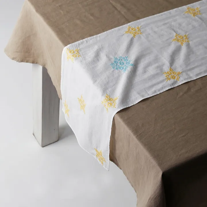春から初夏にかけて咲くガーベラとデイジーの花束のを刺繍を施したテーブルランナーです。 やさしいカラー展開でこれからの季節にぴったりの商品。 それぞれの花言葉には『希望』や『前進』など、ポジティブな意味があり、お誕生日や結婚記念日など、お祝いの席にも。