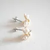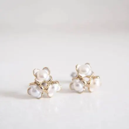 ピアス【Vintage】/ミニフラワーブーケピアス ハナミズキをモチーフとしたGraceシリーズを ミニマムに丁寧に表現した 小さく愛らしいフラワーモチーフのコレクション 既存のイヤリングで人気の高いデザインを新たにピアスにて展開する、NEWピアスシリーズです。 アンティークショップで目にするようなクラシカルな印象のピアスは デイリーからセレモニーまで、幅広いシーンにお使いいただけます。 シンプルながらもOucaらしいアクセントの効いたアイテムが揃います。 瑞々しいハナミズキのお花をモチーフにし フラワーモチーフでありながら華やかさや可愛らしさだけでなく、 清楚さやヴィンテージのような凛とした佇まいなど様々な要素を持ち Oucaのアイコニックなアイテムとして長年ご好評いただいているGraceシリーズ。 そんな多くの魅力の詰まったGraceシリーズのモチーフを ぎゅっと小さな世界にまとめ、ミニサイズのお花モチーフとして丁寧に表現しました。 コンパクトなサイズながらもGraceのモチーフと同様に GDカラーとホワイトエナメルのコンビネーションにこだわり、 小さなサイズ感の花弁の中にもエナメルを施し、 お花のサイズには余るほどのぷっくりとした淡水パールをあしらいました。 ぎゅっと小ぶりなモチーフの中でも、エナメルのつや感と淡水パールの輝きを 最大限贅沢に楽しんでいただけます。 この小さなお花モチーフ一つひとつを組み合わせて、 縦に連ねた人気のIラインのモチーフと 花束を思わせるような、さりげなくボリュームを持たせたブーケ型のモチーフの 2つのモチーフを作りました。 それぞれのモチーフで、クリップタイプのイヤリングと直付けタイプのピアスを展開。 ご自分に合ったアイテムをお選びいただけます。 Graceシリーズの凛とした存在感とはまた異なる 細やかさによって美しさが際立つ小さく可憐なフラワーモチーフを ぜひ身に着けて、その魅力をお楽しみくださいね。 ◆詳細◆ 一つひとつが可愛らしい小花を立体的に様々な角度から楽しんでいただけるよう 小ぶりなサイズ感に仕上げた、可憐さの際立つ愛らしいブーケ風のフォルム。 3つの小花を寄せ集めた、優しい丸みを帯びコロンと愛らしいモチーフは 着けていただくと耳に心地よく収まり、さりげないアクセントに◎ エナメルと淡水パールの質感の異なるホワイトカラーは明るく爽やかな印象をもたらし、 メタルモチーフとの組み合わせにも優しくマッチします。 イヤリングタイプ(EN128)もございます。 商品には専用のBOXが無料で付属しますので、ギフトにも最適です◎